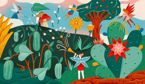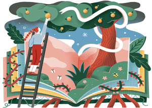 Illustration for The Author magazine on the article "Publishing a sustainable book - Piers Torday asks how we can reduce publishing’s impact on the planet"